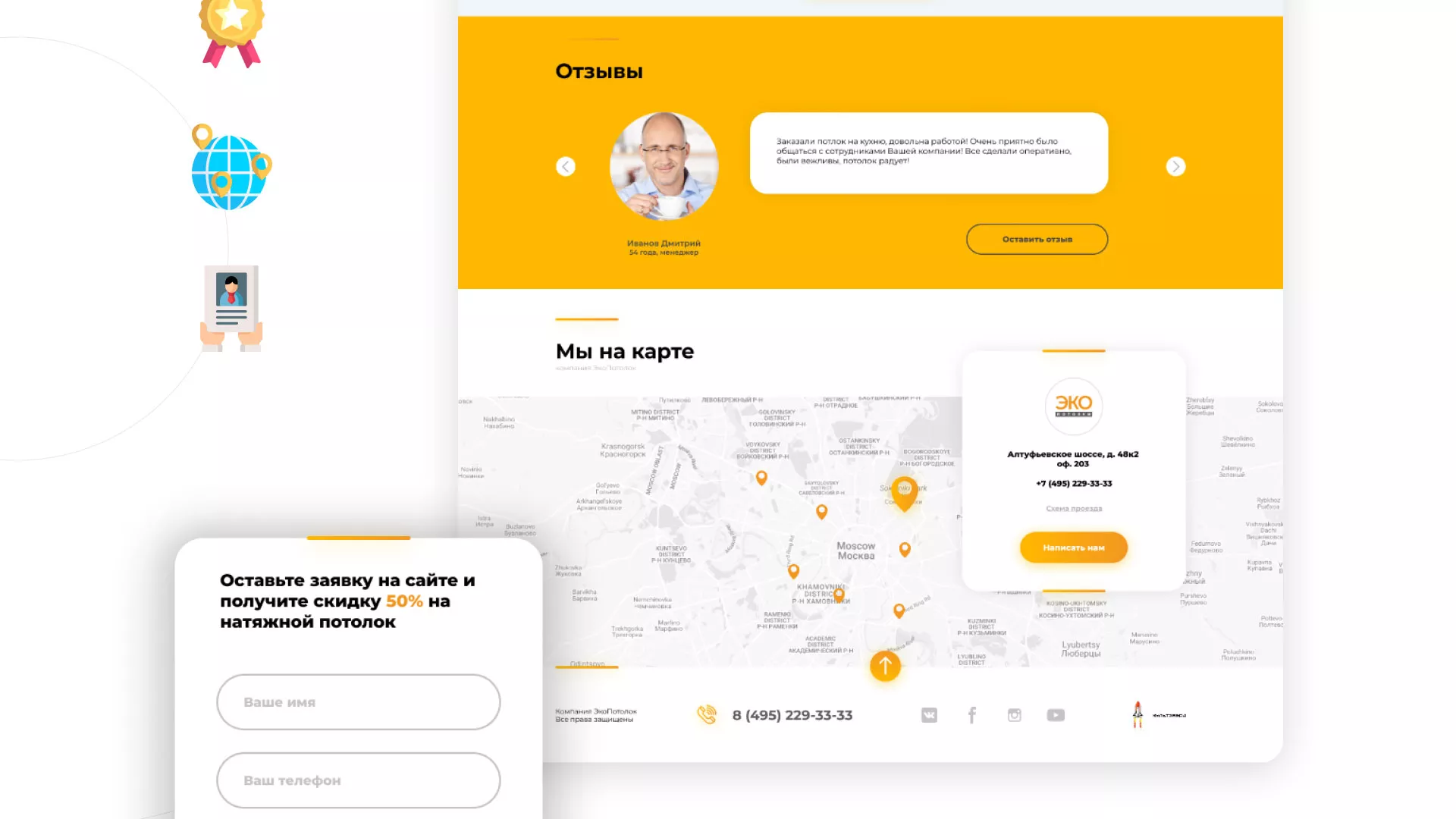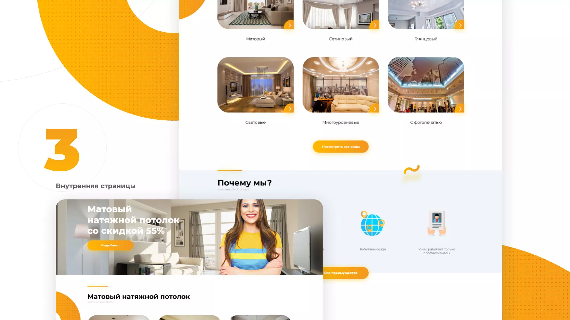 В нашем портфолио в Красноармейске Вы можете найти большое количество вариантов готовых сайтов, среди которых есть и сайты по натяжным потолкам. Все проекты выполнены с учётом пожеланий заказчиков, многие из которых стали нашими друзьями.