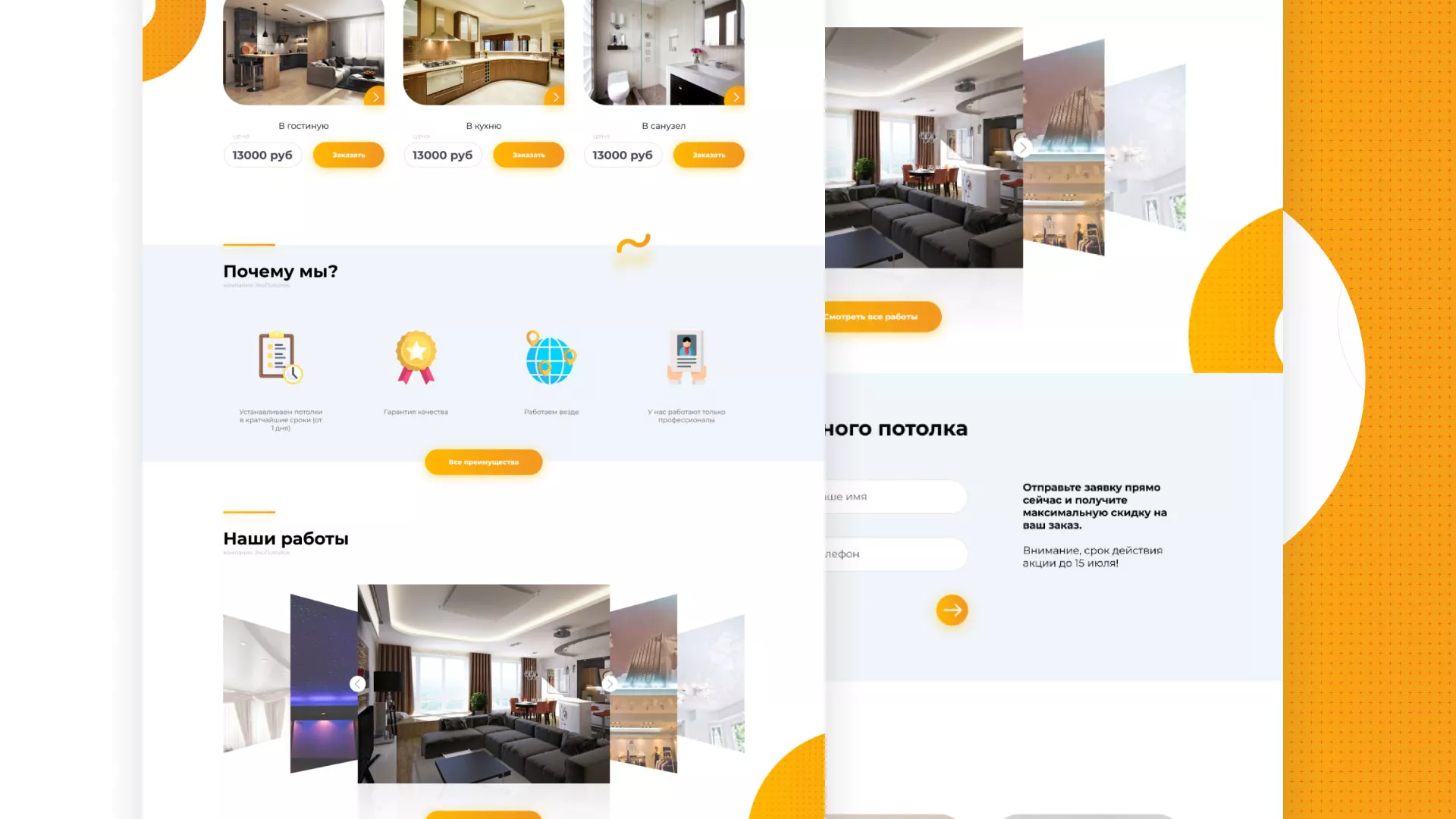Вам нужна разработка сайта по натяжным потолкам в Красноармейске? Специалисты компании «Мультзавод» готовы помочь! Мы предлагаем большой выбор уже готовых вариантов, а также можем создать и что-нибудь новое!