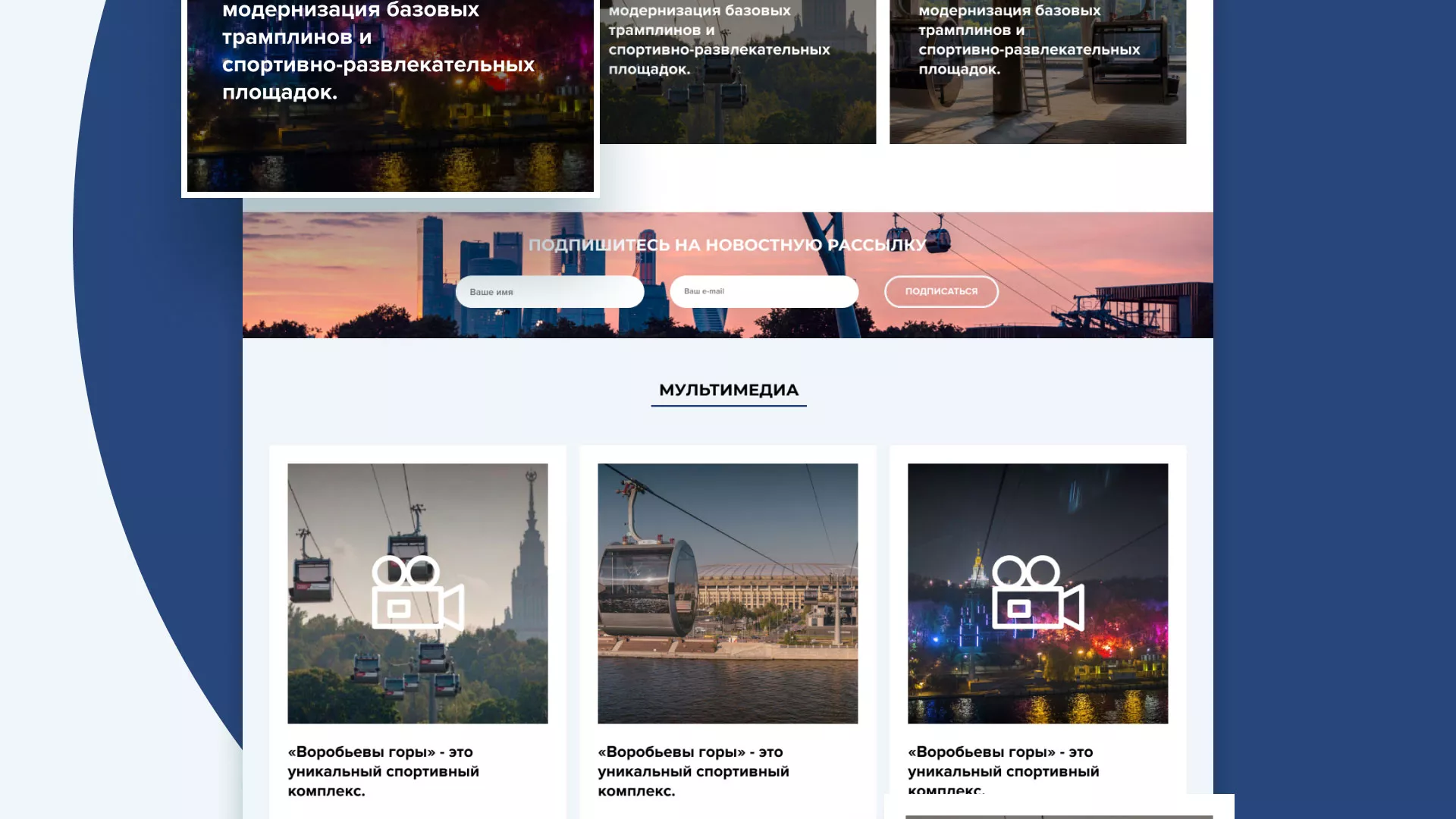 Разработка официального сайта в Красноармейске для спортивно-развлекательного комплекса «Воробьёвы горы».