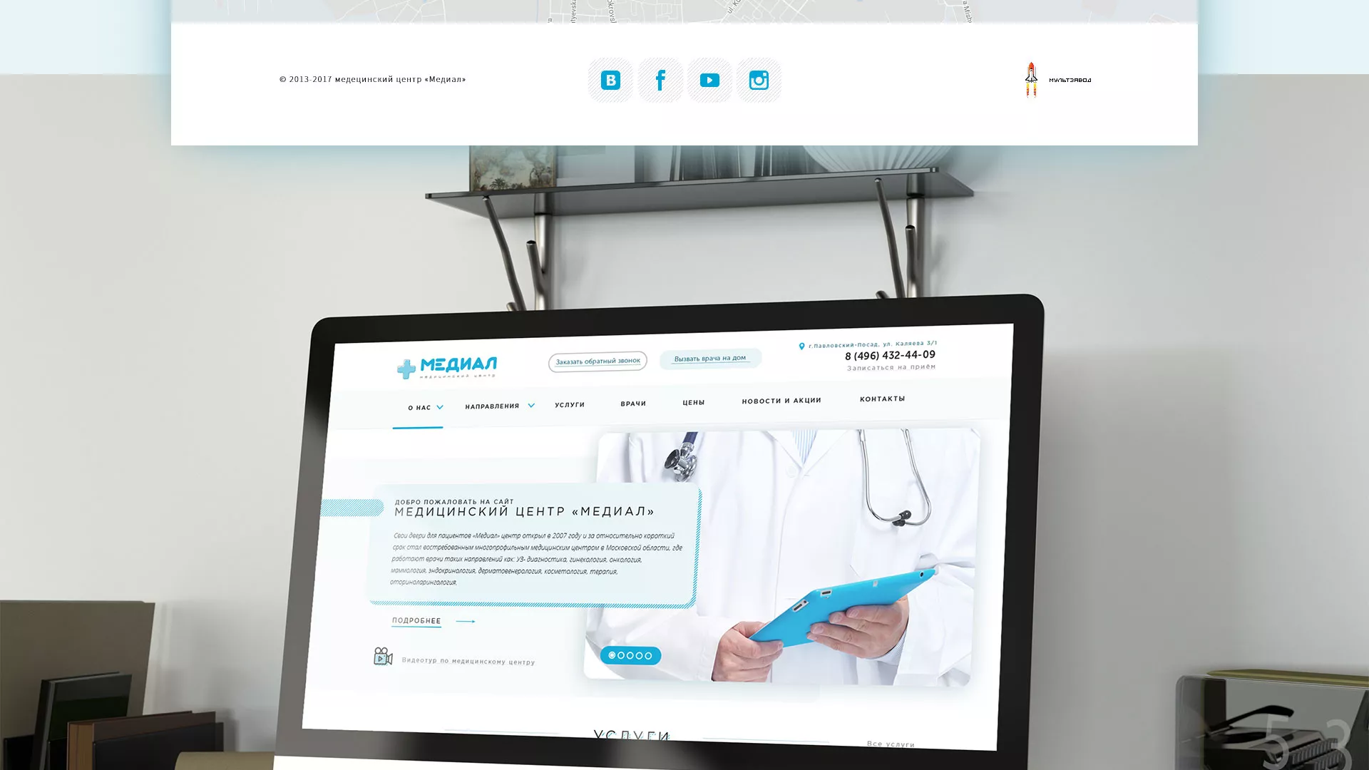 Сайт медцентра «Медиал» в Красноармейске является «лицом» учреждения, презентует его с лучших сторон, доступно информирует об оказываемых услугах. Он легкий в навигации и использовании. На таком сайте должно быть просто узнать о врачах, услугах, записаться на прием всем возрастным категориям, от 16 до 60 лет. Это должен быть современный, функциональный и эстетически приятный сайт. В рамках создания сайта для медицинского центра компания «Мультзавод» в Красноармейске ориентируется именно на эту задачу.
