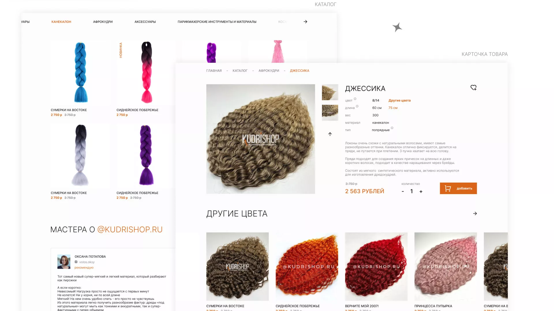 Создание интернет-магазина по продаже афрокудрей и других материалов для брендинга в Красноармейске. Целевая аудитория — молодые и современные девушки, желающие разнообразить свой образ.